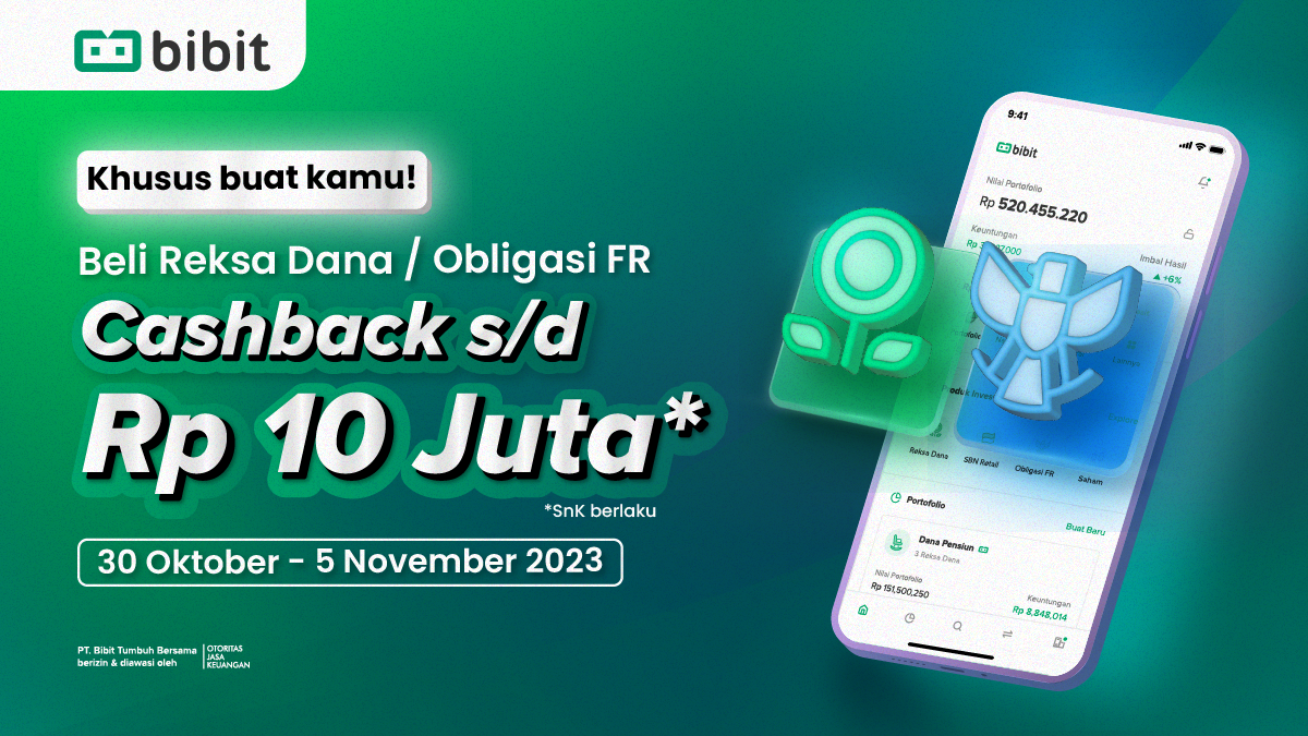 Lanjut investasi di Bibit dan dapatkan cashback hingga Rp10 juta khusus hanya untukmu yang mendapatkan notifikasi terkait promo ini.
