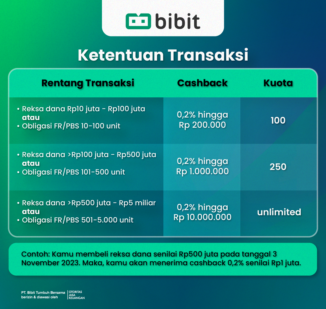 9. Cashback akan diberikan maksimal 15 Februari 2024 dalam bentuk saldo referral Bibit