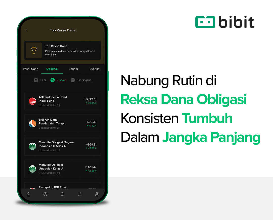 Anda bisa mulai investasi di berbagai jenis aset tersebut melalui Bibit dengan melakukan upgrade akun menjadi Bibit Plus! Bibit Plus menyediakan lebih beragam pilihan aset investasi seperti Reksa Dana, Obligasi (FR dan SBN Ritel), hingga Saham hanya dalam satu aplikasi.