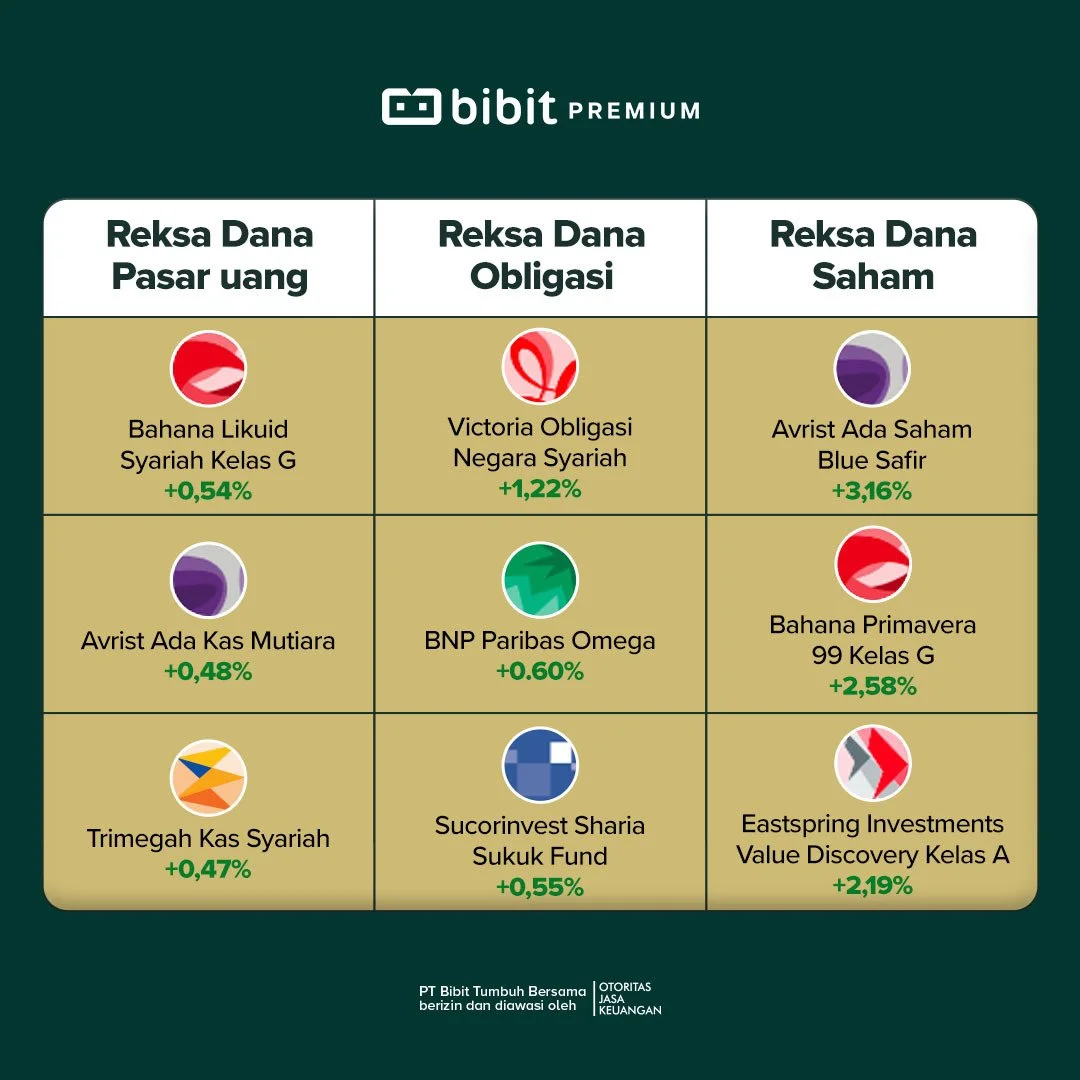 3 Produk Reksa Dana di Bibit dengan Return Tertinggi dalam 1 Bulan Terakhir