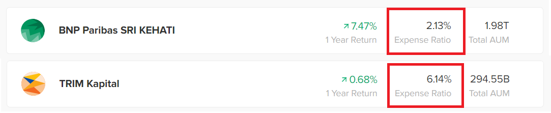 Contohnya seperti di gambar bawah ini. TRIM Kapital adalah reksa dana yang dikelola secara aktif, sedangkan BNP Paribas SRI KEHATI merupakan reksa dana pasif/indeks.