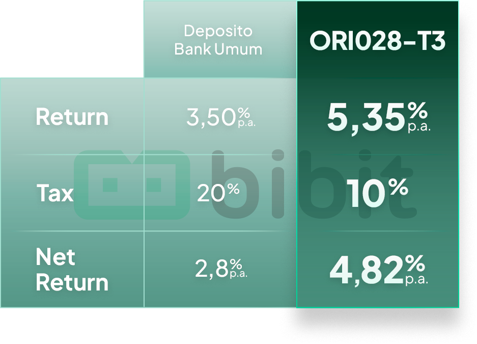 Dengan demikian, ORI028 memberikan return 72% lebih tinggi dari deposito yang dijamin LPS.