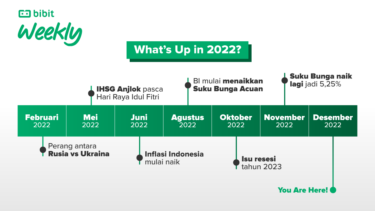 Nggak terasa 2022 tersisa sebulan lagi. Gimana dengan target dan resolusi kamu tahun ini? Bicara soal target dan resolusi, Bibit Weekly Desember 2022 bakal ngajak kamu buat melakukan Portfolio Check Up. Sebagai permulaan, kita akan flashback untuk melihat apa saja yang sudah terjadi sejak Januari sampai sekarang. Yuk, kita breakdown satu per satu!