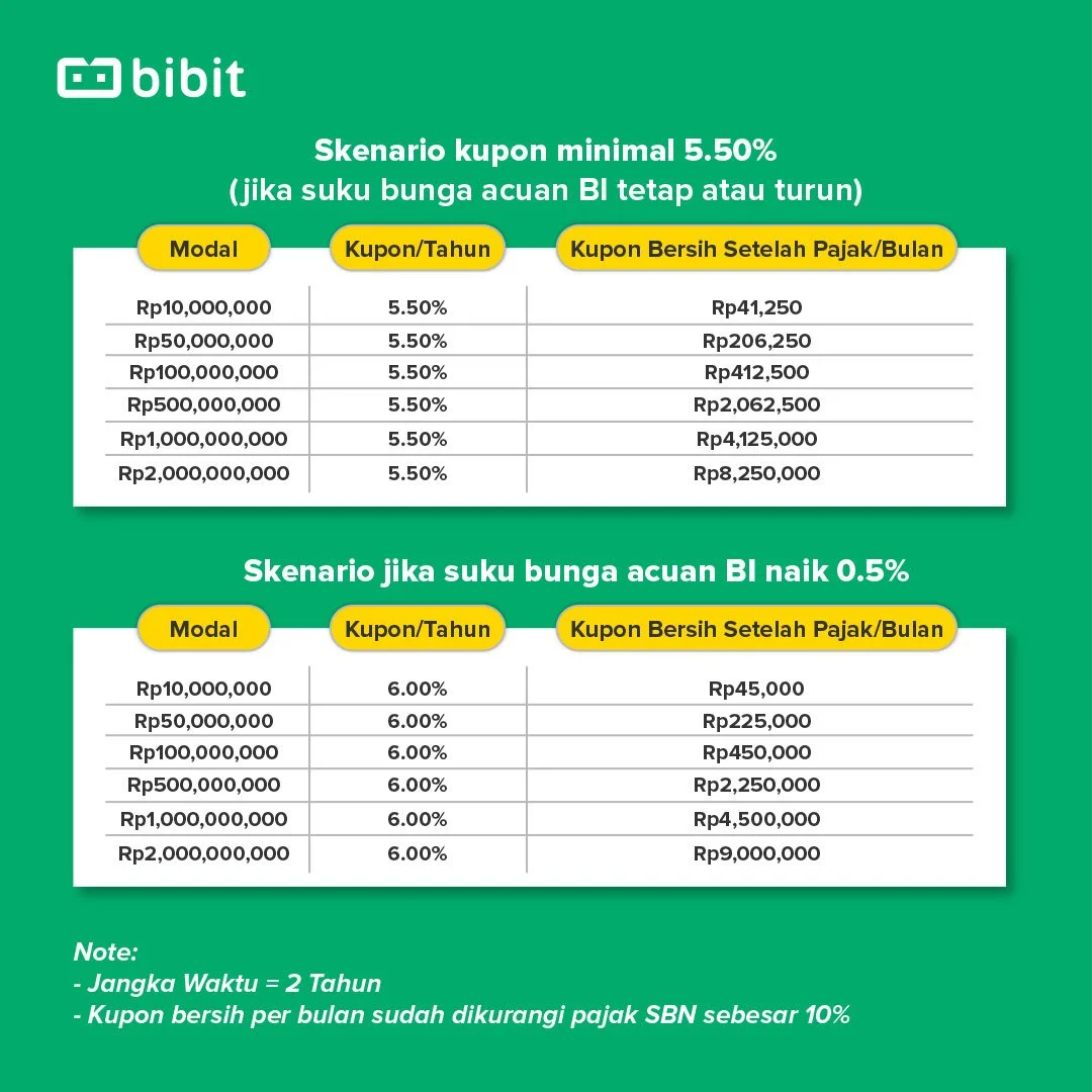 Bagaimana kalau kamu berinvestasi dengan nominal lain di SBR011? Kamu bisa cari tahu dengan tabel di bawah ini, ya!