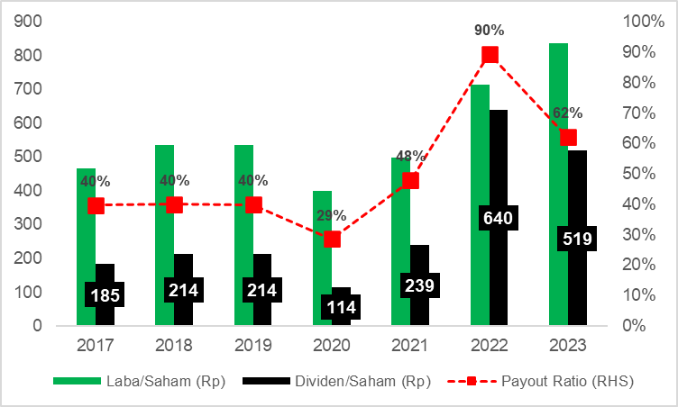 Tren pembayaran dividen ASII sendiri cenderung meningkat sejak keluar dari puncak pandemi pada 2020:
