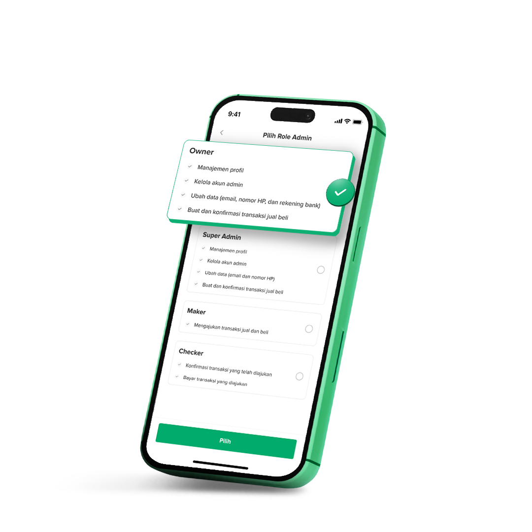 Kelola dana perusahaan di Bibit Bisnis dengan fitur Multi Access Permission. Sehingga tim kamu bisa bantu mengelola dana perusahaan di Bibit Bisnis, tetapi 100% kontrol tetap ada di kamu.