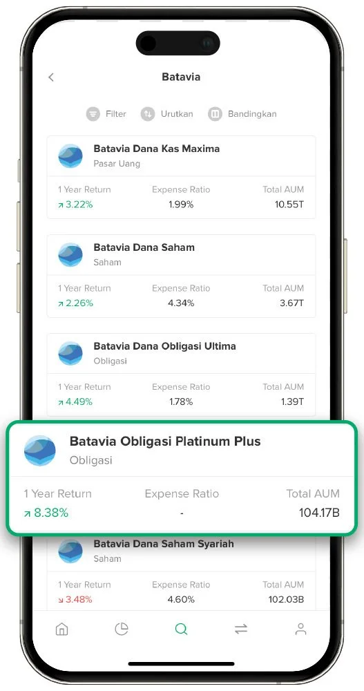 Selain produk Reksa Dana Batavia Obligasi Platinum Plus, produk dari BPAM yang bisa kamu beli di aplikasi Bibit: