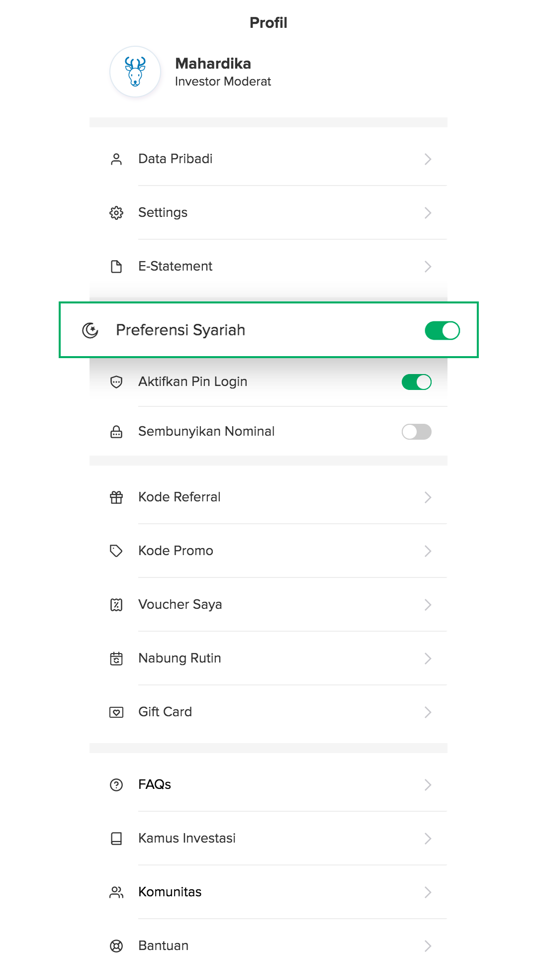 Fitur Bibit Syariah berfungsi supaya aplikasi Bibit hanya menampilkan reksa dana syariah. Reksa dana non-syariah akan disembunyikan ketika fitur ini aktif. Jadi kamu bisa nabung reksa dana syariah lebih nyaman.