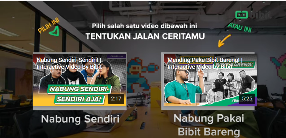 Kamu bisa tentuin jalan ceritanya sesuai keinginanmu. Pada saat setiap akhir video akan muncul pilihan cerita selanjutnya yang bisa kamu tentuin seperti gambar di bawah.