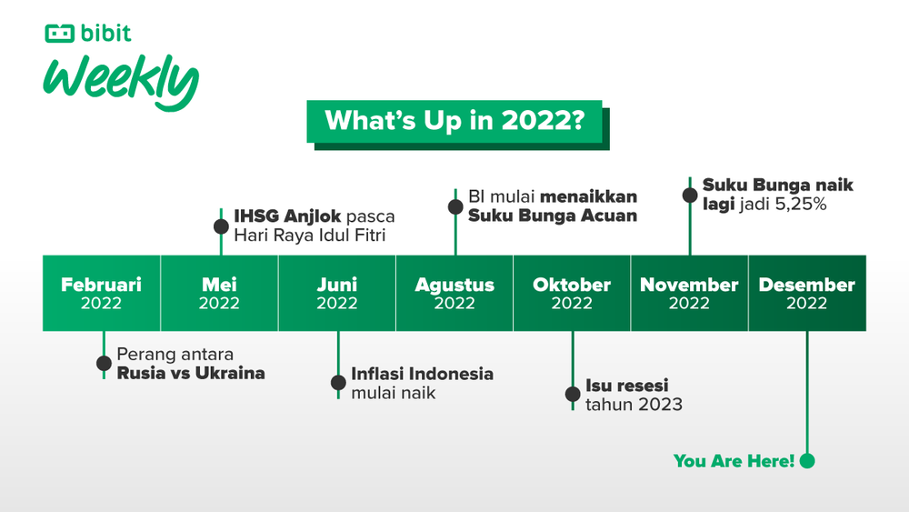 Sepanjang Desember, Bibit Weekly sudah membahas banyak tentang portofolio check up di 2022. Mulai dari melihat kilas balik yang terjadi di 2022, seperti isu resesi global sampai kenaikan suku bunga yang agresif. Lalu bagaimana performa instrumen investasi sepanjang tahun ini di tengah market yang naik turun. Dan terakhir, ada set-up goals buat 2023!