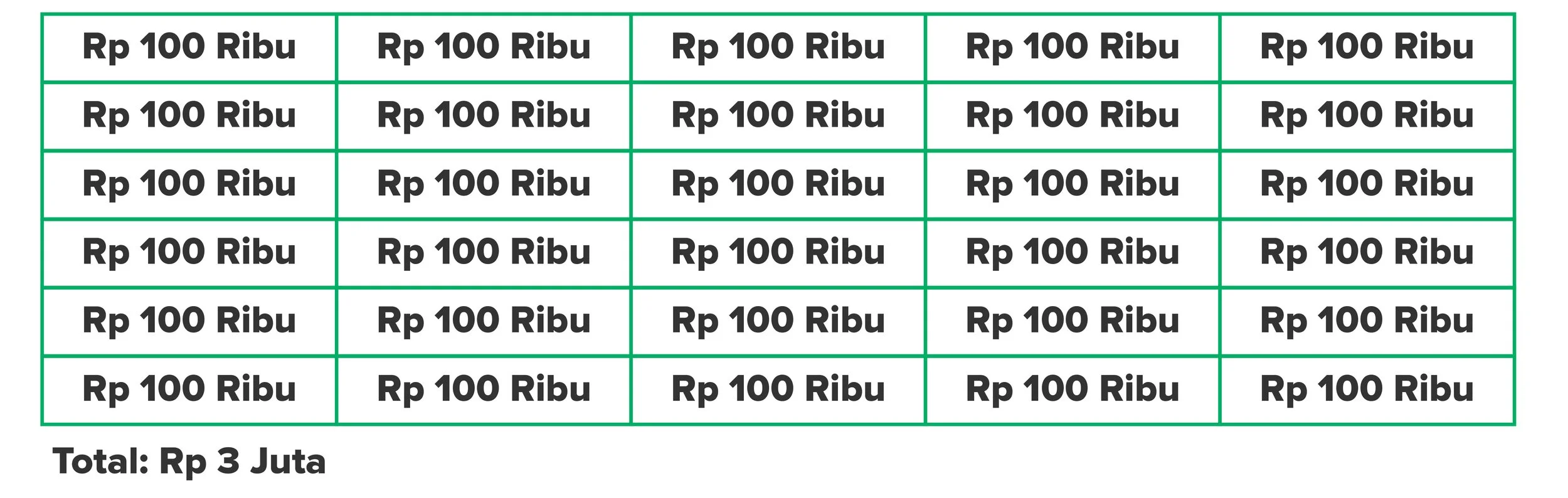 Tabel di atas adalah simulasi jika kamu menabung setiap hari selama kurang lebih 30 hari selama Ramadan. Maka, hasilnya kamu akan mengumpulkan Rp3 juta. Hal ini tentu saja jika kamu menyimpan uangmu di celengan ayam atau menyimpannya di tabungan bank biasa.