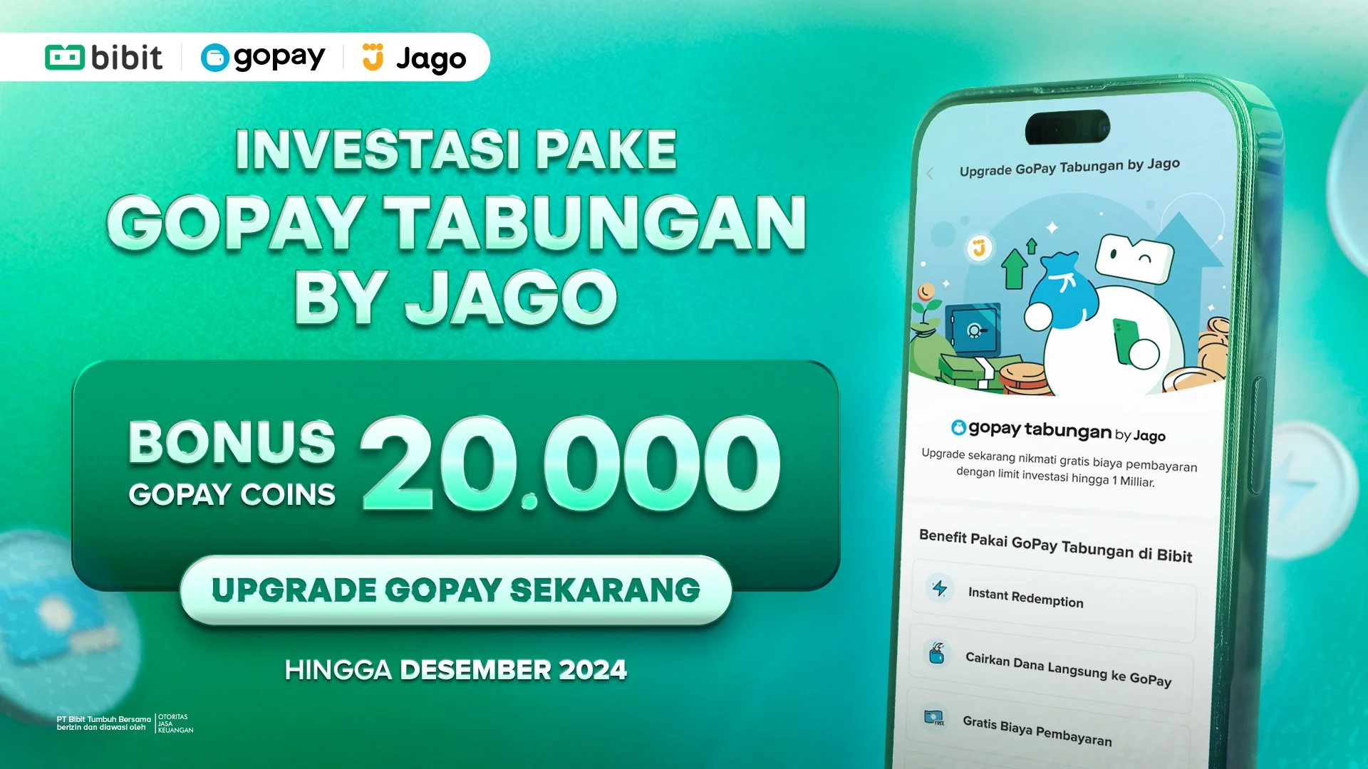 Investasi di Bibit pakai GoPay Tabungan by Jago bisa dapat GoPay Points! Segera upgrade ke GoPay Tabungan.