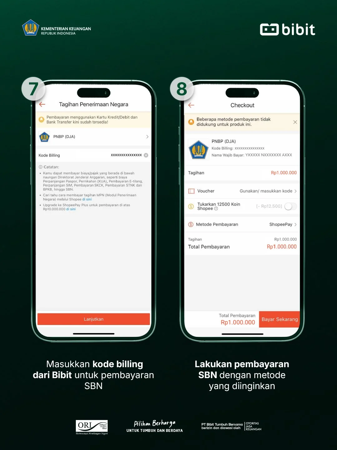 Cara Bayar SBN ORI029 di Bibit Pakai Metode Pembayaran Shopee
