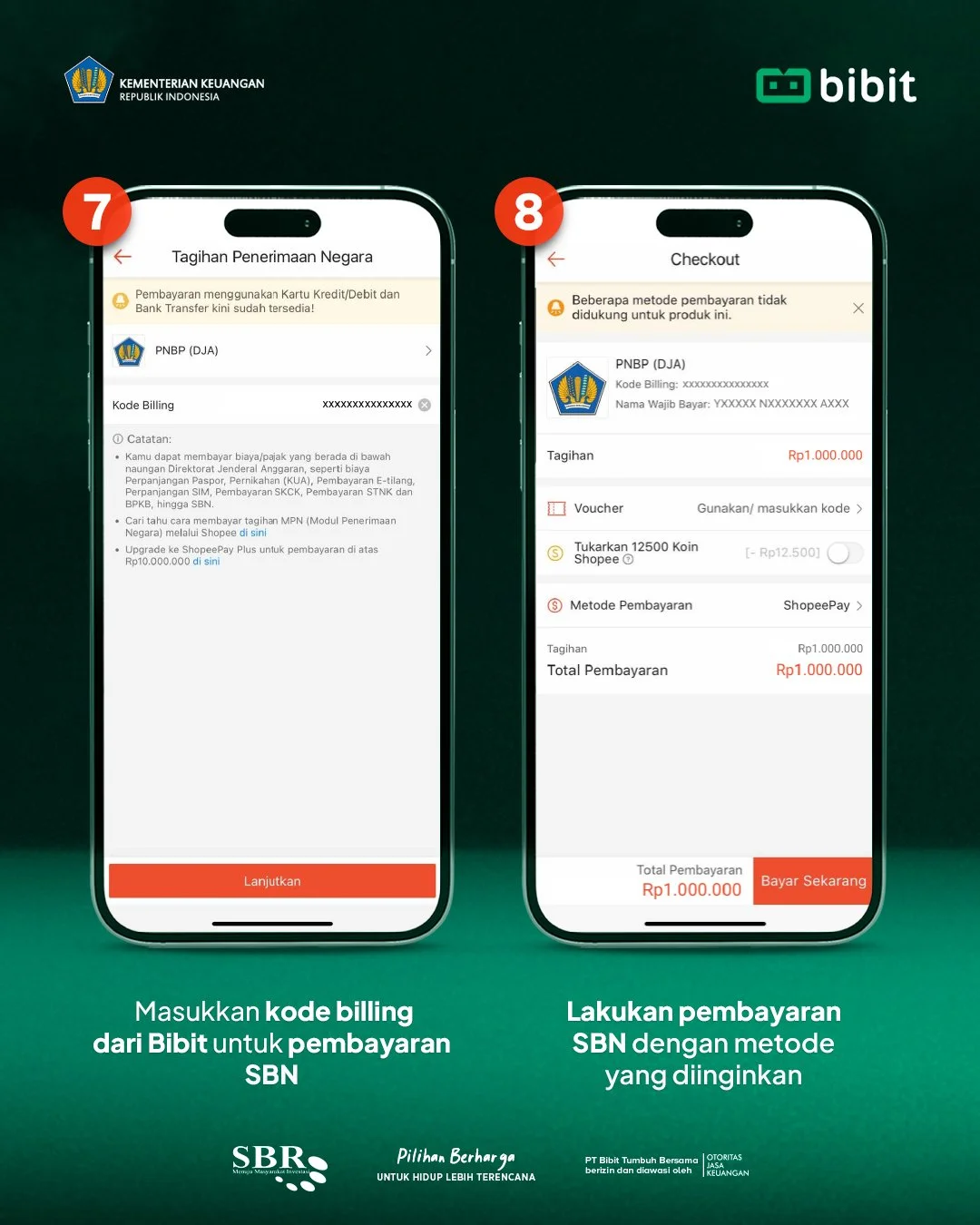 7. Masukkan Kode Billing dari Bibit untuk pembayaran SBN