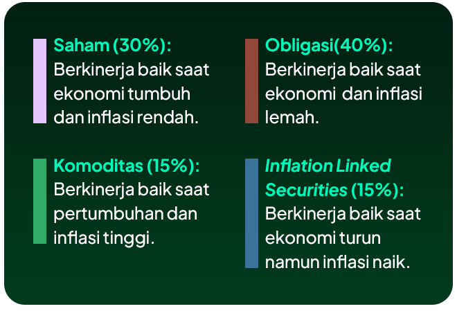 Pendekatan ini tidak bertujuan mencari return tertinggi dalam satu kondisi tertentu, melainkan menjaga portofolio tetap resilient di berbagai siklus ekonomi.
