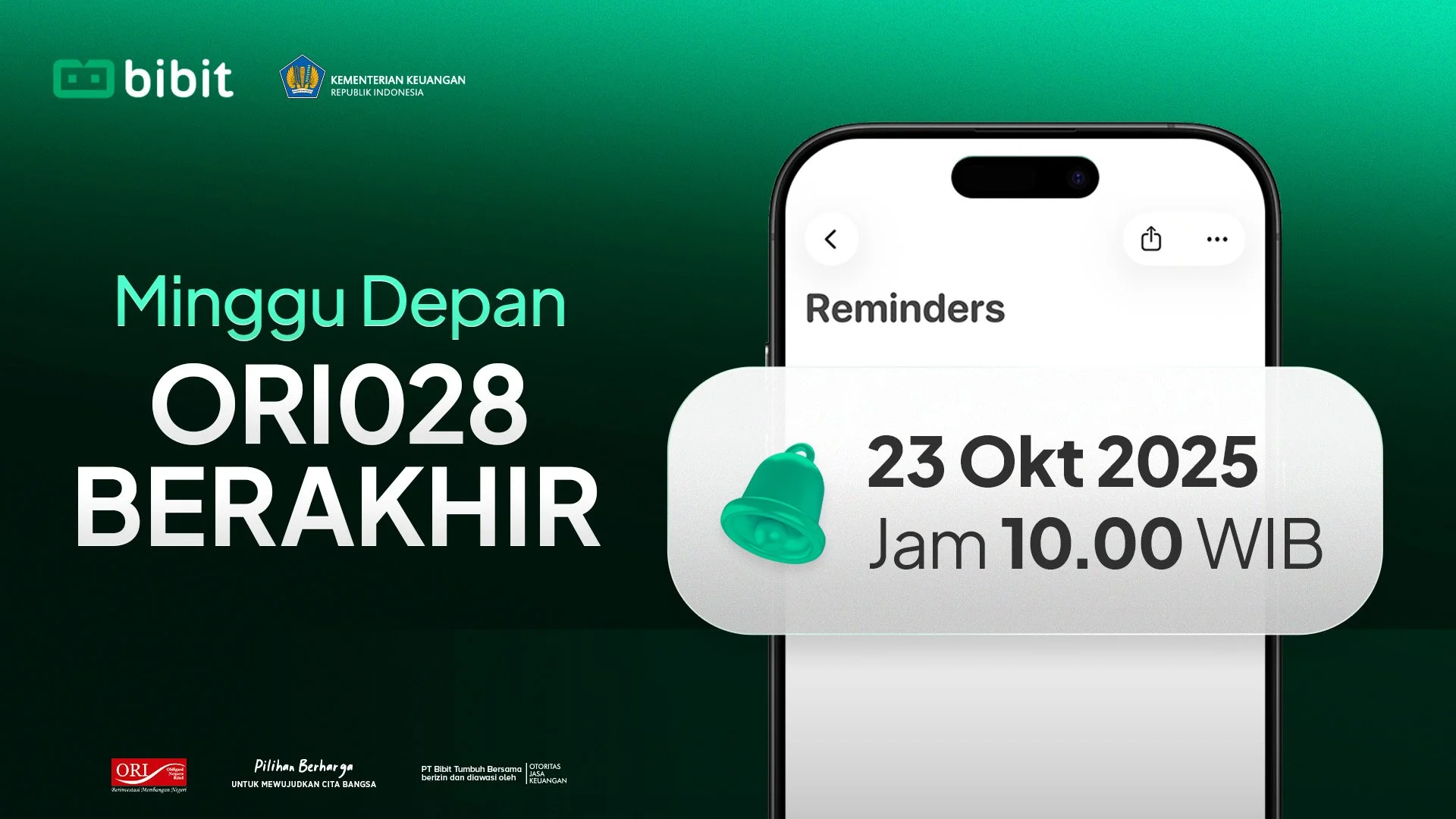 Segera amankan kuota ORI028 yang bisa dibeli di Bibit. ORI028 mengakhiri masa penawaran minggu depan, 23 Oktober 2025 pukul 10.00 WIB.