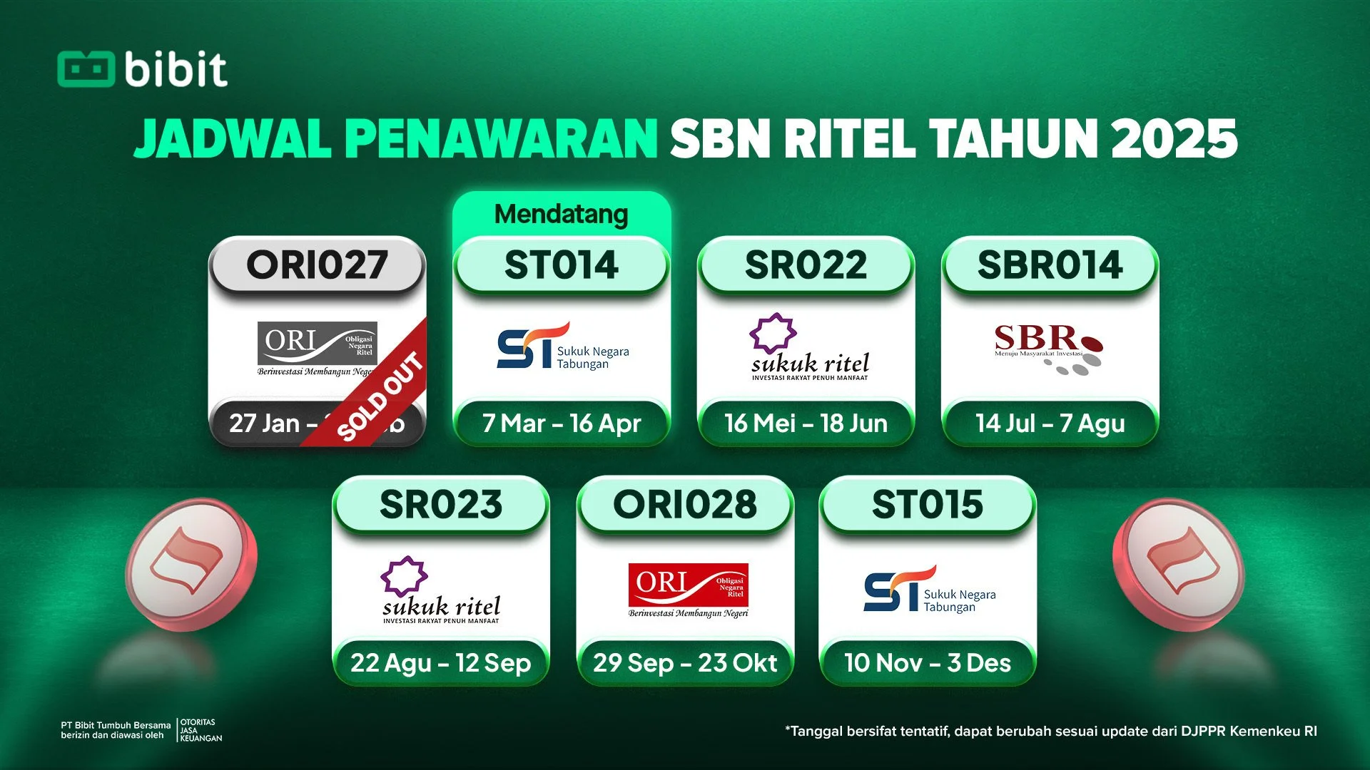 SBN Syariah Sukuk Tabungan seri ST014 akan terbit dan bisa dibeli di Bibit. Masa penawaran akan berlangsung pada 7 Maret - 16 April 2025.
