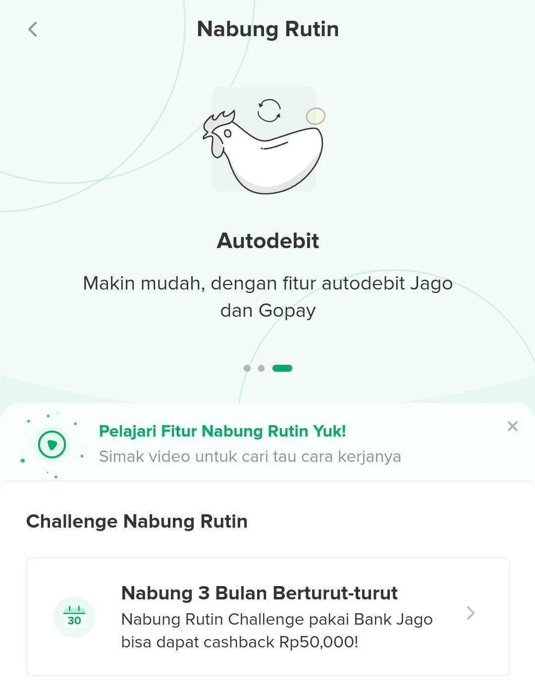 Nah pas banget nih, soalnya sekarang ada Nabung Rutin Challenge! Kamu bisa mendapatkan cashback sebesar Rp50 ribu hanya dengan mengikuti Nabung Rutin Challenge 3 kali berturut-turut selama 3 bulan. Semua yang berhasil menyelesaikan Nabung Rutin Challenge ini pasti dapat cashback! Nabung rutin jadi makin untung, kan? Jangan lupa cek di link ini ya untuk baca ketentuannya!