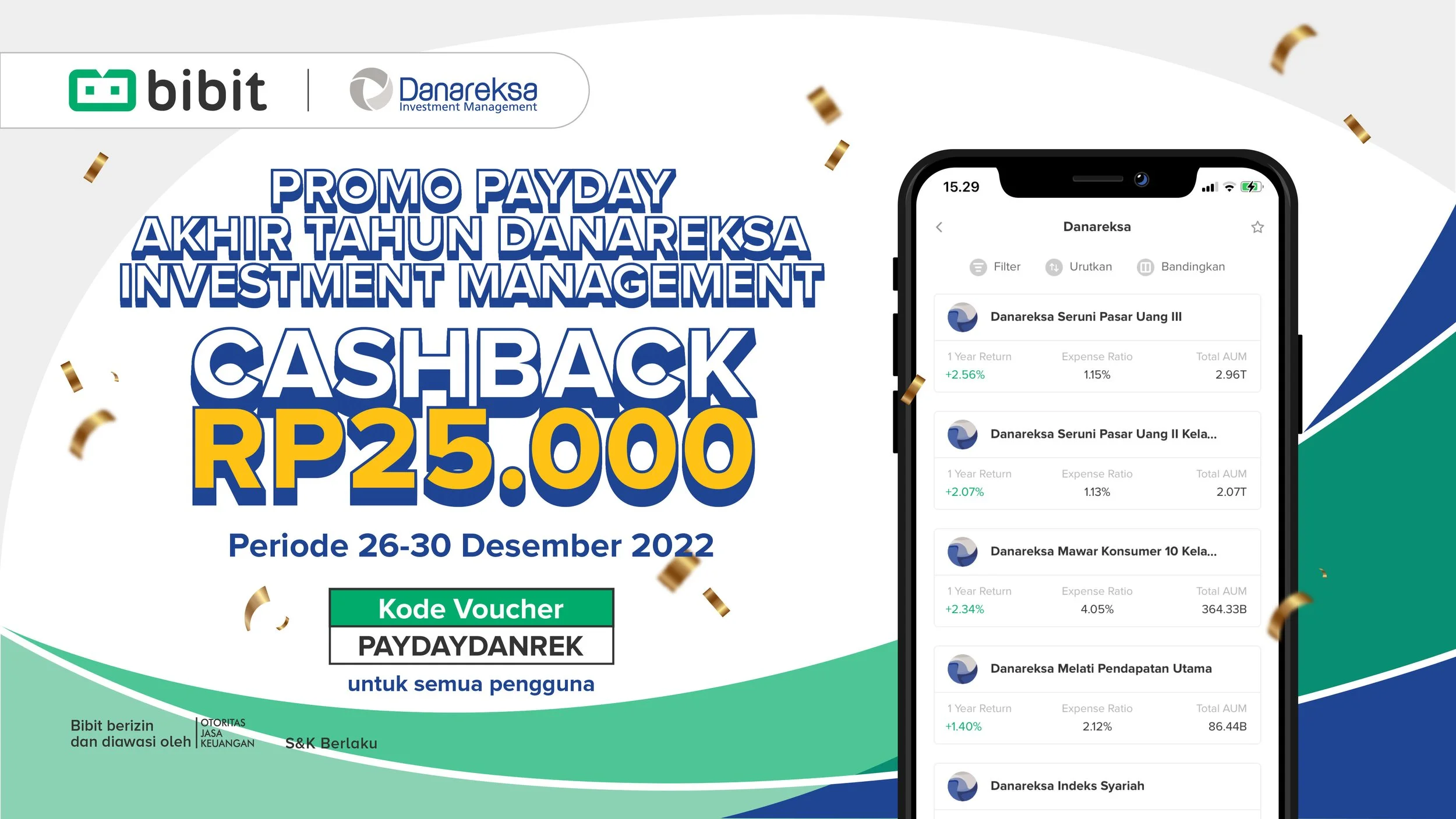Mumpung baru gajian, yuk tabung sebagian gaji kamu dengan beli produk Danareksa di Bibit! Ada cashback Rp25 ribu untuk kamu yang beli reksa dana minimal Rp2,5 juta.