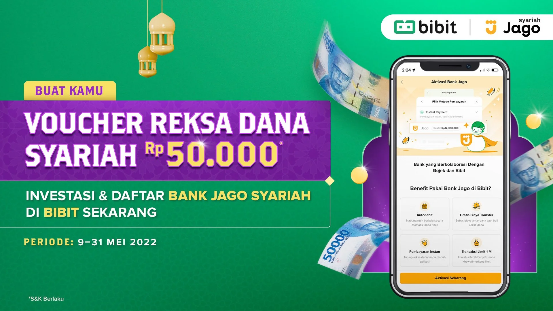 Promo khusus pengguna baru Jago Syariah yang menyelesaikan registrasi melalui aplikasi Bibit mulai 9 Mei 2022