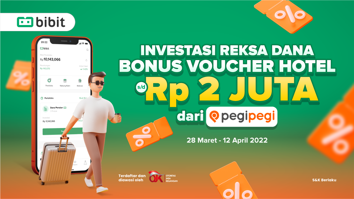 Dapatkan voucher diskon hotel 10% di PegiPegi.com dengan minimum pembelian reksa dana Rp1.500.000 di Bibit.