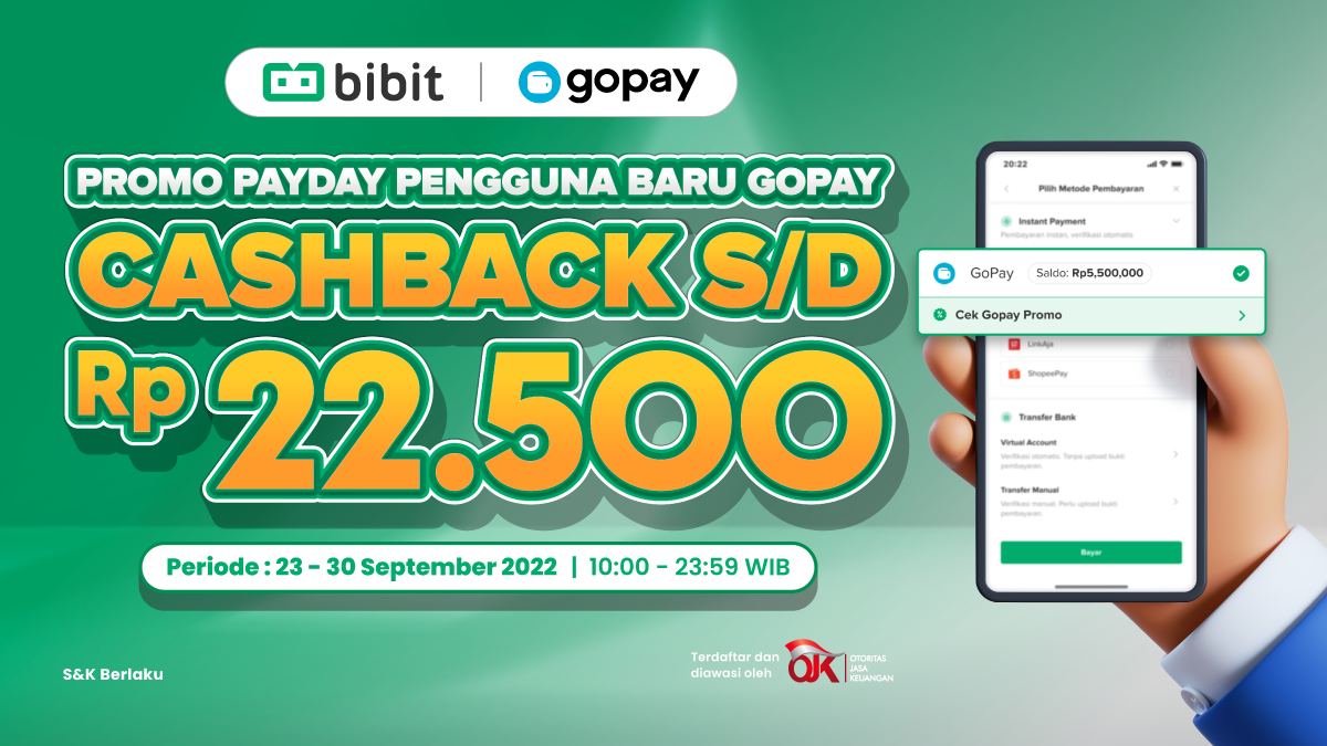 Gajian telah tiba! Sisihkan gaji kamu untuk ditabung ke Bibit yuk? Ada bonus cashback saldo GoPay hingga Rp22.500 untuk kamu yang mulai nabung di Bibit pakai GoPay. Cek ketentuannya di sini: