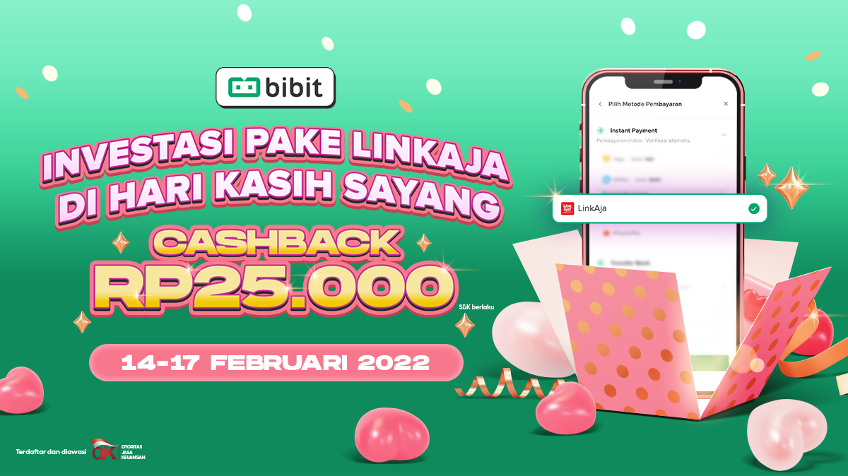 Di hari kasih sayang ini Bibit dan LinkAja mau bagi-bagi cashback buat kamu yang rajin nabung! 🥰