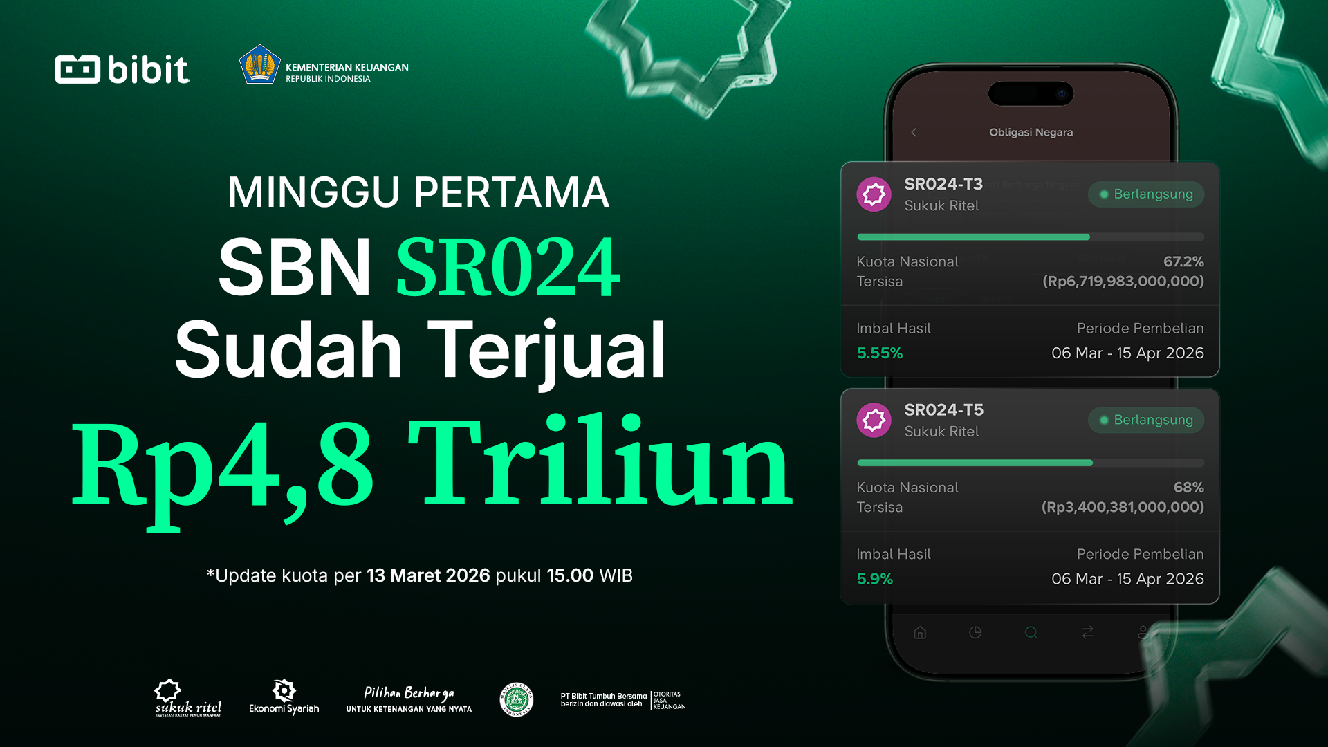 Update penjualan nasional SBN SR024 juga bisa dilihat di website resmi Bibit. Kamu juga bisa memantau kuota SBN SR024 terkini secara real-time di aplikasi Bibit.