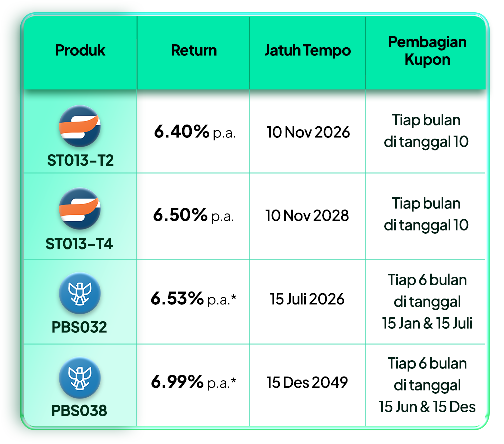 ST013-T4: tenor 4 tahun, imbal hasil floating with floor minimal 6,50% per tahun