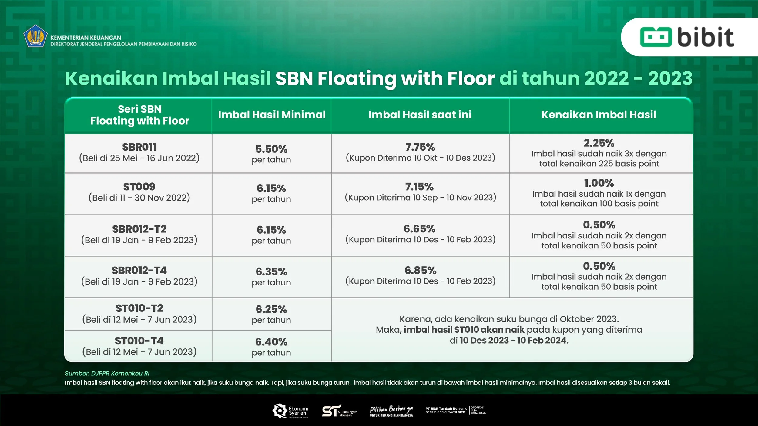 ST011-T2: tenor 2 tahun dengan imbal hasil minimal 6,30% per tahun, floating with floor